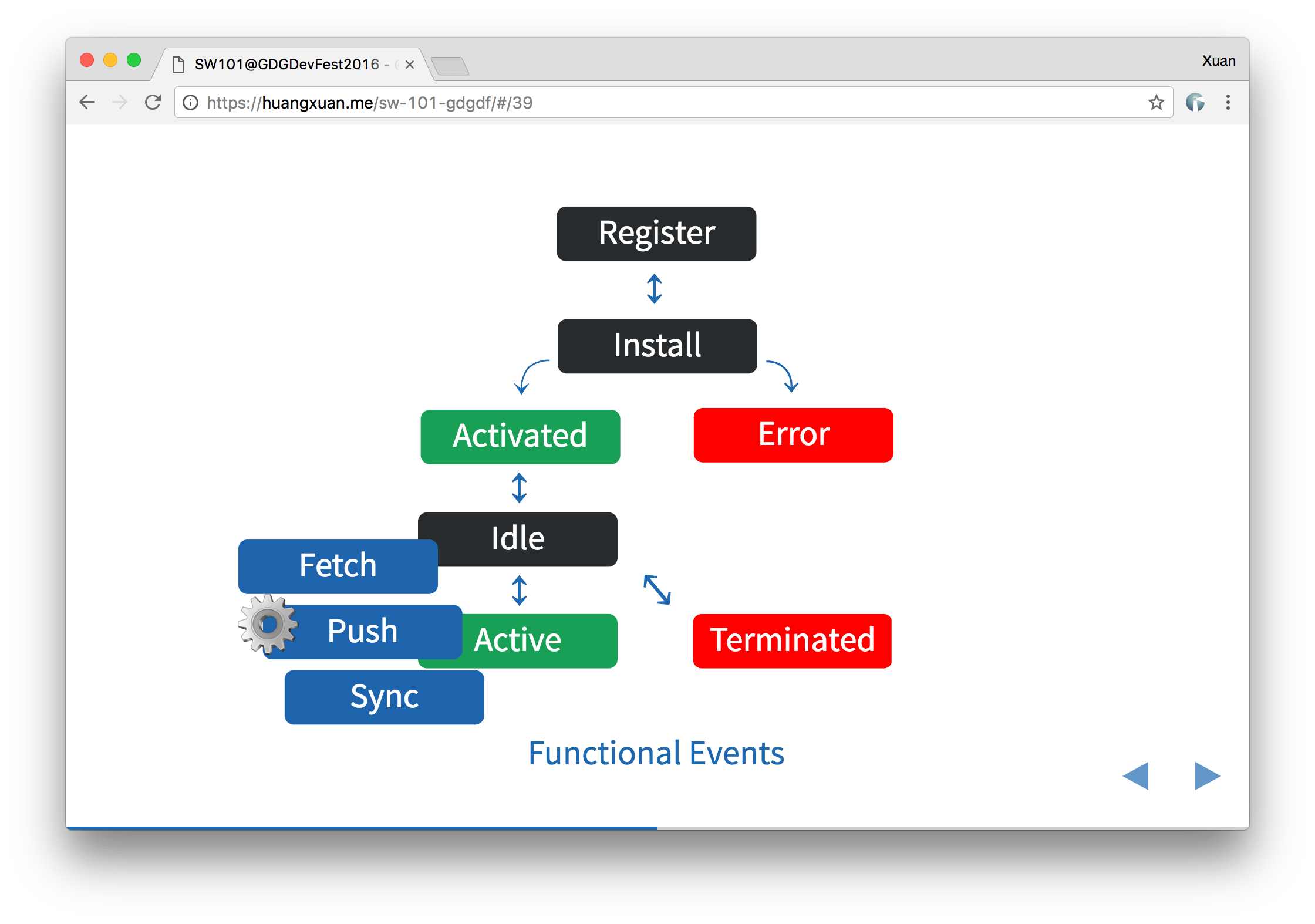 可以看出,Service Worker 被设计为一个相对底层(low-level)、高度可编程、子概念众多,也因此异常灵活且强大的 API,故本文只能展示它的冰山一角。出于安全考虑,注册 Service Worker 要求你的 web 应用部署于 HTTPS 协议下,以免利用 Service Worker 的中间人攻击。笔者在今年 GDG 北京的 DevFest 上分享了 Service Worker 101,涵盖了 Service Worker 譬如「网络优先」、「缓存优先」、「网络与缓存比赛」这些更复杂的缓存策略、学习资料、以及示例代码,可以供大家参考。